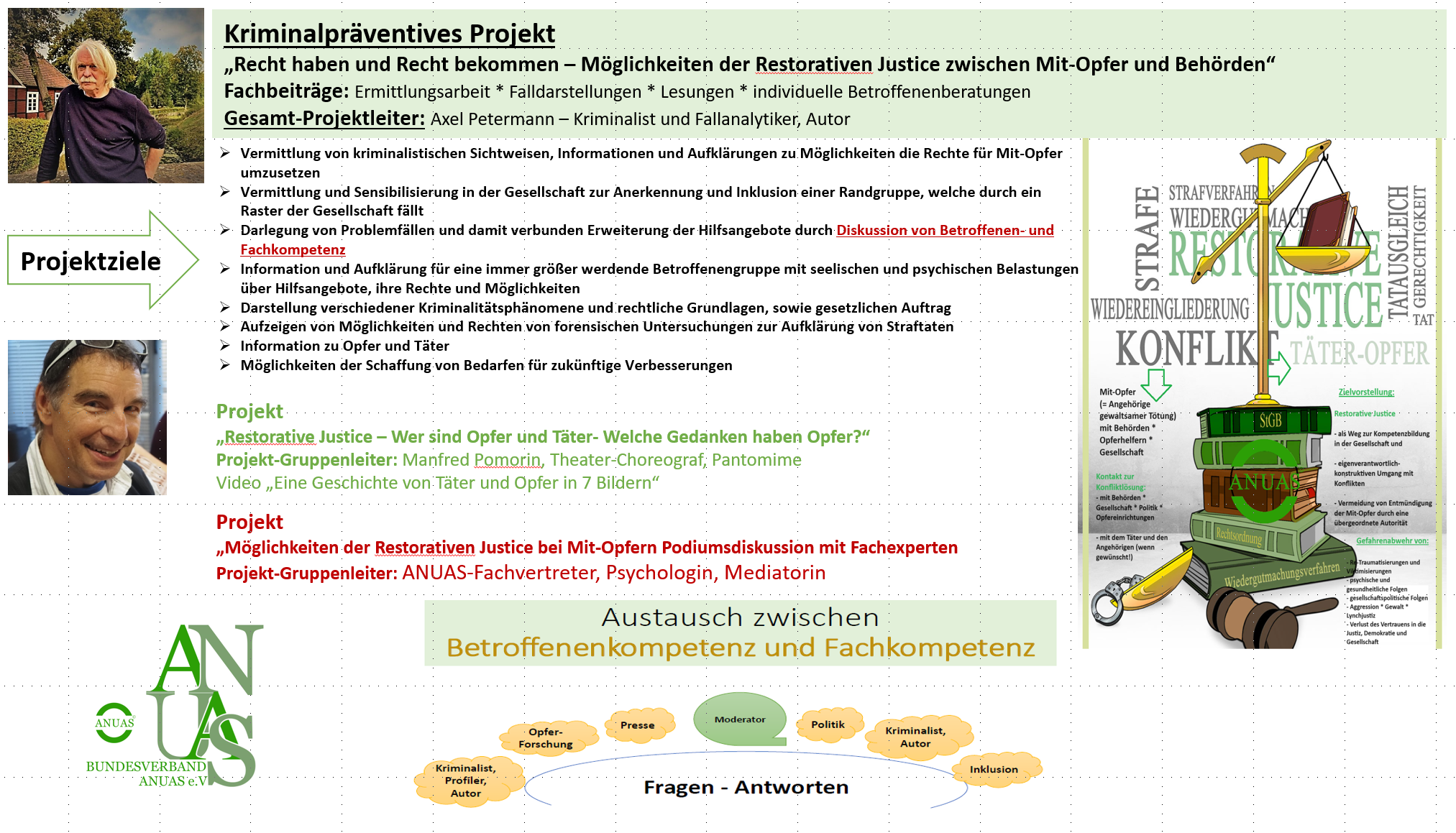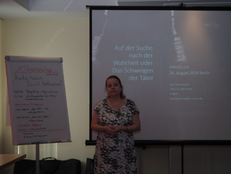 Nachdem die Vorstellung der wirklichen Anliegen Betroffener zur Restorativen Justize im letzten Jahr nicht ausreichend umgesetzt werden konnte, hat die ANUAS-Bundesvorsitzende in diesem Jahr das Projekt noch einmal intensiver vorgestellt.