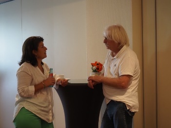Die Geschäftsführerin, Frau Christine Metzing tauscht sich mit der Bundesvorsitzenden des ANUAS e.V. und andere Teilnehmer über gesellschaftliche Probleme bei Tötungsdelikten aus. Frau Metzing berichtete, dass sie in ihrer Klinik Erfahrungen zum Thema gemacht hat, dass der fehlerhafte Umgang der Fachkompetenz mit der Betroffenenkompetenz nicht nur zu schweren Re-Traumatisierungen führt, sondern zu Suiziden.